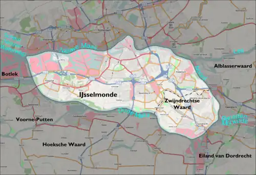 La partie sud-est de l'île ne fait pas réellement partie d'IJsselmonde : il s'agit du Zwijndrechtse Waard, où se trouvent les villes de Zwijndrecht, Hendrik-Ido-Ambacht et Heerjansdam. La rivière de Waaltje forme la ligne de séparation entre IJsselmonde et le Zwijndrechtse Waard. Le Zwijndrechtse Waard est traverse par la rivière de Devel.