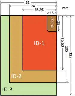 ID-000 répond au format de 25 × 15 mm. Ce format est utilisé pour les cartes SIM (format « mini SIM » – 2FF).