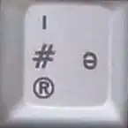 - sur le devant de la touche, si la géométrie des touches le permet (exemple : le clavier canadien multilingue standard).