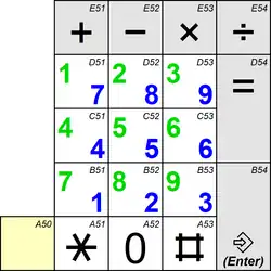 - zone numérique : les chiffres proprement dits et le séparateur décimal (point/virgule).