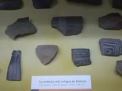 - Vers 3500-1500 av. J.-C. : culture Valdivia en Équateur. Pêche, chasse, cueillette, agriculture tropicale (cotonnier, haricots, balisier, calebasses). Céramique et figurines féminines[18].