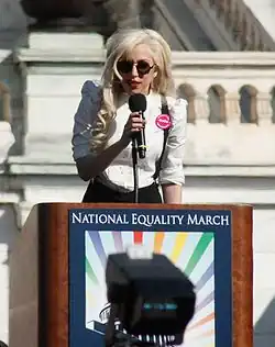 - ↑ (en) Dan Zak, « Lady Gaga, Already a Gay Icon, Shows She's an Activist Too », The Washington Post, 12 octobre 2009 (lire en ligne)
