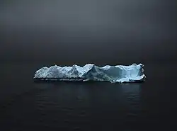 En raison de la densité plus faible de la glace par rapport à l'eau, les icebergs dérivent dans la mer sans couler. Une partie importante d'un iceberg reste cachée sous la surface de l'eau, ce qui a donné naissance à l'expression « la pointe de l'iceberg ». Les icebergs sont considérés comme une menace sérieuse pour la navigation : après le naufrage du Titanic en 1912 à cause d'un iceberg, la patrouille internationale des glaces a été créée.