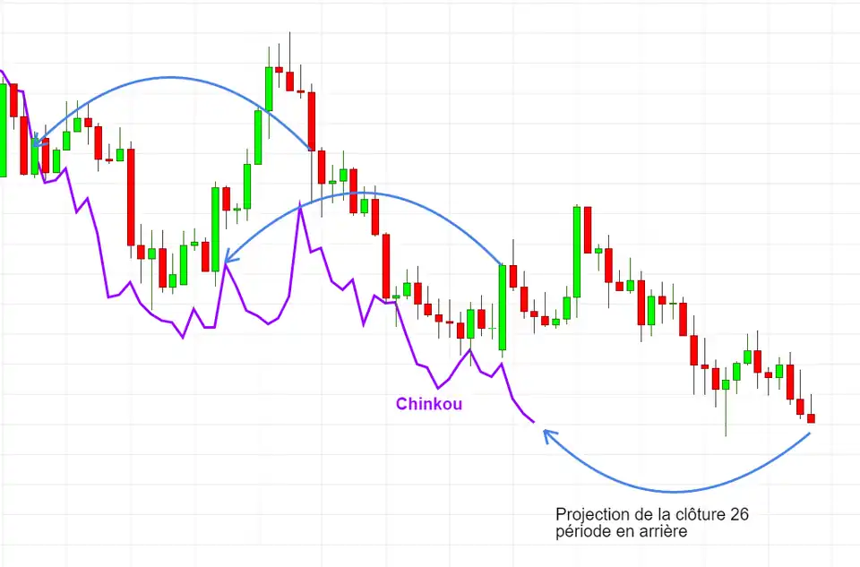 Souvent abregée en « Chikō » ou CS, elle correspond au dernier prix de clôture projeté vingt-six périodes en arrière. Elle est aussi appelée Lagging Span pour les analystes anglophones et le terme est également souvent utilisé par les analystes francophones.