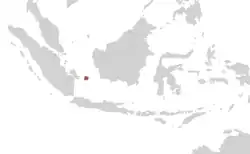 Cette espèce est endémique de l'île de Belitung en Indonésie[1].