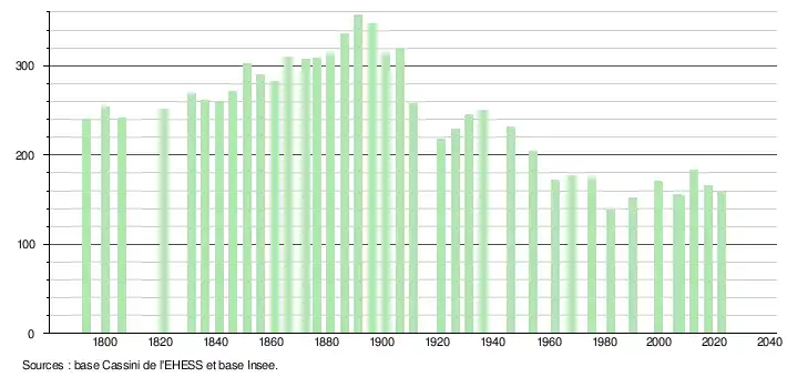 - ↑ Fiches Insee - Populations de référence de la commune pour les années 2006, 2007, 2008, 2009, 2010, 2011, 2012, 2013, 2014, 2015, 2016, 2017, 2018, 2019, 2020, 2021 et 2022.