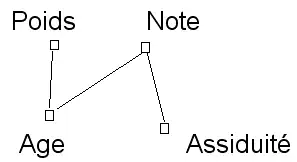 Par exemple, retirons la composante de l’âge, dont l’influence, prépondérante, est bien connue. Le schéma révèle alors l’influence directe de l’assiduité sur la note. L’âge a disparu de la figure, ainsi que sa composante dans toutes les variables. Et le poids se trouve isolé.