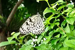 Idea malabarica est un grand papillon blanc veiné et orné de noir avec une ligne marginale de points noirs.