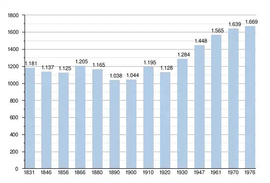 - Sources : INS, Rem. : 1831 jusqu'en 1970 = recensements, 1976 = nombre d'habitants au 31 décembre[2].