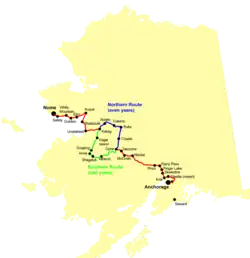- ↑ (en) Don Bowers, « Iditarod Race History » [html],
