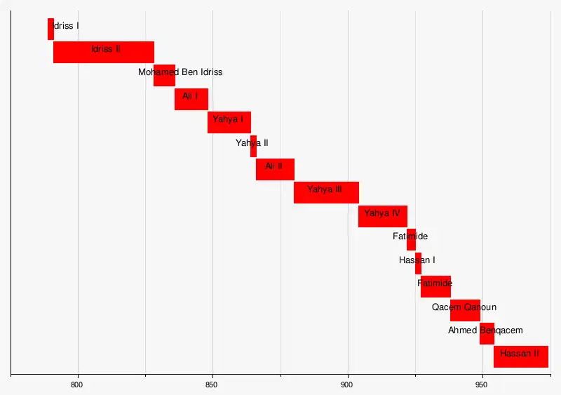 - 974-985 : Al-Hasan ben Kannûn (Hassan II) en exil depuis 974 jusqu'à 985, date à laquelle le dernier prince idrisside fut assassiné sur les ordres des Omeyyades de Cordoue.