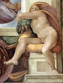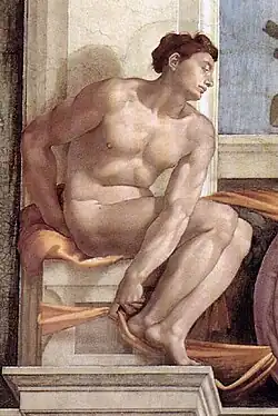 Les Ignudi sont des figures particulièrement célèbres peintes à fresque, réalisées par Michel-Ange sur le plafond de la chapelle Sixtine, aux musées du Vatican à Rome, dont la décoration a été commandée par Jules II.