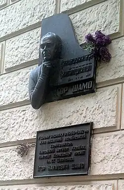 Plaque commémorative du compositeur ukrainien Ihor Chamo, rue Kostolna, à Kiev.