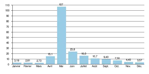 En considérant la seule période estivale, libre de glaces (de mai à septembre inclus), le débit mensuel minimal observé a été de 4,06 m3/s en , ce qui restait acceptable.