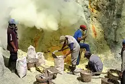 Le fond de la caldeira de Kendeng abrite plusieurs villages dont les habitants cultivent des caféiers[2]. Certains d'entre eux vivent de l'extraction du minerai de soufre qu'ils vont chercher à pied dans la solfatare du Kawah Ijen, qu'ils ramènent dans des paniers et qu'ils revendent ensuite[2].