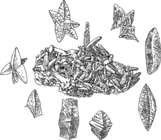 - ↑ (en) M.E. Kaplan, « Calcite pseudomorphs (pseudogaylusite, jarrowite, thinolite, glendonite, gennoishi) in sedimentary rocks. The origin of pseudomorphs (in Russian) », Lithology and Mineral Resources, vol. 5, , p. 125–141