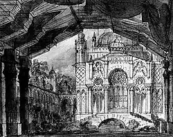 Décor d'Alessandro Sanquirico pour la scène 4 de l’Acte II (Milan, 1826)