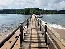 L'îlot forme un prolongement de Principe, île à laquelle il est relié par une langue de sable, doublée par une passerelle en bois. L'autre extrémité est plus abrupte, souvent battue par les vagues[1].