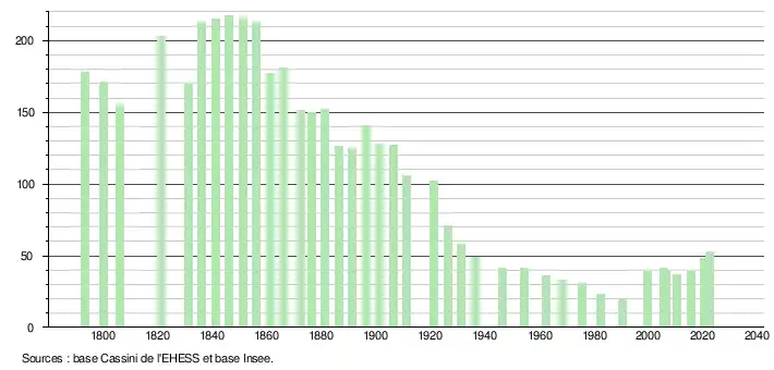 - ↑ Fiches Insee - Populations de référence de la commune pour les années 2006, 2007, 2008, 2009, 2010, 2011, 2012, 2013, 2014, 2015, 2016, 2017, 2018, 2019, 2020, 2021 et 2022.
