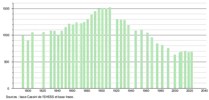 - ↑ Fiches Insee - Populations de référence de la commune pour les années 2006, 2007, 2008, 2009, 2010, 2011, 2012, 2013, 2014, 2015, 2016, 2017, 2018, 2019, 2020, 2021 et 2022.