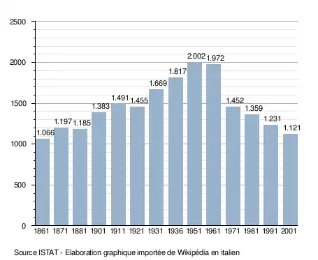 - ↑ (it) Popolazione residente e bilancio demografico sur le site de l'ISTAT.