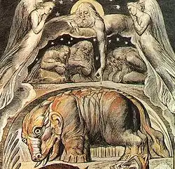 Dès le début de sa carrière artistique, Blake collectionne les gravures d'Albrecht Dürer. La représentation de Béhémoth sur la planche 15 des gravures aurait été influencée par le rhinocéros de Dürer[5].