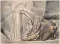 - ↑ Geoffry Keynes (Drawings of William Blake: 92 Pencil Studies, New York, Dover Publications, 1970) rapproche ce dessin de cette gravure des Illustrations.