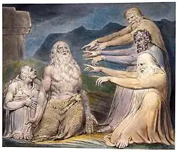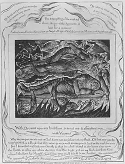 En 1826, William Blake peint une dernière œuvre sur le thème de Job, une peinture a tempera représentant Satan frappant Job d'une lèpre maligne[4].