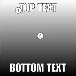- Du texte, généralement un grand texte en Impact[3], centré en haut et en bas de l'image, généralement en majuscules. Des fautes d'orthographe exagérées et intentionnelles sont également fréquemment utilisées à des fins humoristiques.
