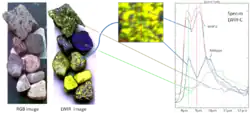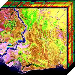 Une image hyperspectrale fournit pour chaque pixel une caractéristique du matériau photographié qui prend la forme d'un vecteur à plusieurs centaines de dimensions (autant que de bandes spectrales). Les applications sont nombreuses. Par exemple[2] :