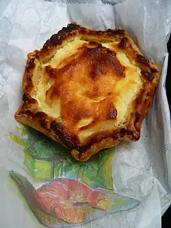 Le gâteau a une forme ronde avec des petits morceaux de pâte tout autour du bord : ceux-ci sont formés en pinçant la pâte lors de la préparation. Son diamètre varie de 8 à 10 cm, et de 2 à 3 cm. d'épaisseur. L'aspect de ce gâteau, après une cuisson dans un four à chaleur modérée, est levé avec une croûte très fine dorée.