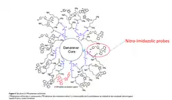 Imdendrim ou dendrimère poly-L-lysines G5 [di-(2-pycolyl){-[(4-nitro-1H-imidazol-1-yl)méthyl]-1H-1,2,3-triazol-4-yl}méthyl)amine] est un agent anticancéreux expérimental breveté en 2014 qui est obtenu par la combinaison de dendrimères poly-L-lysines de cinquième génération avec des ligands vecteurs nitroimidazoles marqués avec le rhénium 188[2]. Il fut introduit pour la première fois chez l'homme en 2017 pour traiter les tumeurs hépatiques non opérables et ne répondant pas aux traitements conventionnels[3],[4],[5]. Imdendrim est sous forme de solution fluide directement injectable à la tumeur solide du foie sous contrôle tomodensitométrique par méthode stéréotaxique ou sous contrôle échographique[6].