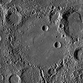 - ↑ (en) Gunter Faure et Teresa M. Mensing, Introduction to Planetary Science: The Geological Perspective, Springer Science & Business Media, (ISBN 978-1-4020-5544-7, lire en ligne), P167 The crater Ibsen (160km) has a smooth uncraterred floor suggesting that it was flooded by lava flows.