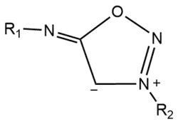 Les iminosydnones sont des composés chimiques mésoioniques caractérisés par leurs structures hétérocycliques. Ils sont composés d’un groupe 1,2,3-oxadiazole substitué par un groupement imine contrairement aux sydnones substituées par une cétone[1].