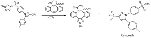 Le N6-sulfonyl iminosydnone peut être utilisé pour la libération bio-orthogonale de médicaments. Cette stratégie permet de libérer par exemple le célécoxib, un anti-inflammatoire non stéroïdien, par la réaction SPICC click-and-release avec DBCO-COOH[9],ce qui présage pour le futur une possibilité de cibler efficacement l’action de cet anti-inflammatoire avec une efficacité légèrement inférieure à celle du Célécoxib en prise directe[8].