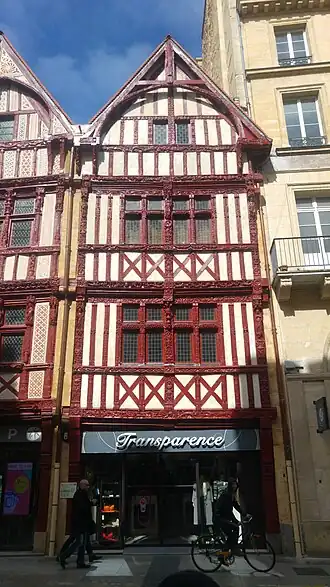 - ↑ Benoît Lascoux, « Deux maisons à pans de bois retrouvent leur éclat d’antan », Ouest-France, (lire en ligne)