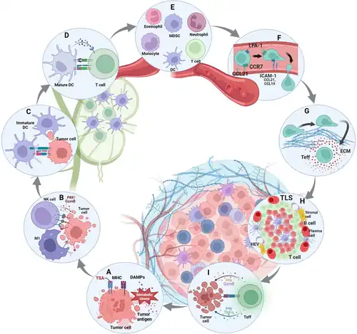 - ↑ (en) Oncology meets immunology: the cancer-immunity cycle. https://www.ncbi.nlm.nih.gov/pubmed/23890059