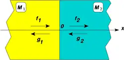 Si l'on choisit l'origine x = 0 à l'interface entre les deux milieux M1 = {x < 0}, d'impédance acoustique Z1, et M2 = {x > 0}, d'impédance acoustique Z2, on peut définir les restrictions suivantes :