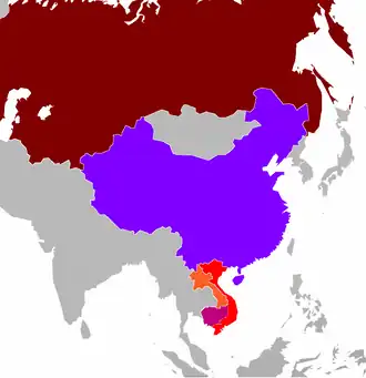 Auparavant, la Chine avait riposté à cet encerclement par une tentative de contre-encerclement, avec notamment le soutien apporté au régime des Khmers rouges du Cambodge pour contrer le Viêt Nam communiste. Ces manœuvres aboutirent à la victoire de Moscou et l'écrasement du Kampuchéa démocratique.