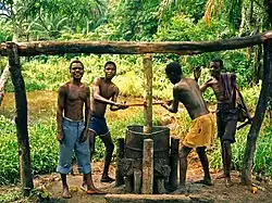 L'huile de palme est un type d'huile végétale produite par des palmiers à huile originaires d'Afrique de l'Ouest et centrale. Utilisée initialement dans l'alimentation des pays en développement, elle est désormais également présente dans les produits agro-alimentaires transformés, les cosmétiques et d'autres types de produits dans d'autres pays. Plus d'un tiers de l'huile végétale consommée dans le monde est de l'huile de palme[101].