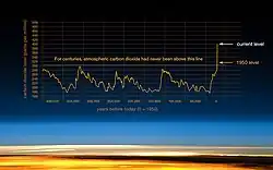 Les termes anthropique et anthropogénique s'appliquent à un effet ou un objet résultant de l'activité humaine. Le terme a été utilisé pour la première fois au sens technique par le géologue russe Alexey Pavlov, et l'écologiste britannique Arthur Tansley l'a été utilisé pour la première fois en anglais en référence aux influences humaines sur les communautés végétales climaciques[16]. Le spécialiste de l'atmosphère Paul Crutzen, prix Nobel de chimie 1995, a popularisé le terme « Anthropocène », néologisme forgé dans les années 1980 par l’écologiste américain Eugene F. Stoermer[17],[18]. Ce mot est parfois réduit au sens de pollution produite par l'activité humaine depuis le début de la révolution verte, mais s'applique logiquement au sens large à tous les principaux impacts humains sur l'environnement[19],[20],[21]. Bon nombre des actions entreprises par les humains qui contribuent à rendre l'environnement plus chaud proviennent de la combustion de combustibles fossiles de diverses sources, telles que : l'électricité, les voitures, les avions, le chauffage des locaux, la fabrication de biens ou la destruction des forêts[22].