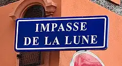 RenomméeMondgässchen pendant l'occupation allemande en 1872 et 1940, elle a porté le nom d'« impasse de la Lune » en 1858, 1918 et depuis 1945[1].