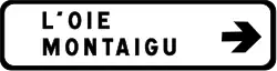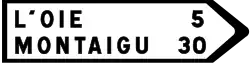 Ils sont en forme de flèche et peuvent ou non comporter une indication de distance. Ils peuvent être à fond bleu, vert, blanc ou jaune.