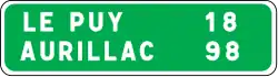 Ils comportent les mentions desservies complétées par les indications de kilométrage. Ils peuvent être à fond bleu, vert, blanc ou jaune et sont surmontés d'un cartouche.