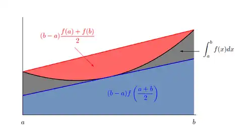 En mathématiques, l'inégalité d'Hermite–Hadamard, nommé d'après Charles Hermite et Jacques Hadamard, parfois appelée inégalité de Hadamard, dit que si une fonction f:[a,b]→ℝ est convexe, alors son intégrale est bornée par: