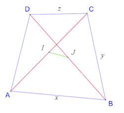 Dans un quadrilatère, la somme des longueurs des côtés est supérieure ou égale à la somme des longueurs des diagonales augmentée de la distance entre les milieux des diagonales, ou bien : dans un tétraèdre, la somme des longueurs de quatre arêtes consécutives est supérieure ou égale à la distance entre les milieux des deux autres arêtes.