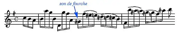 Sur la flûte à une clé de l'époque baroque, il existe une grande différence de timbre entre ce Sol# et les deux voisines que sont Sol et La. Alors que Sol et La sont bien timbrées et sonnent fort, la fourche de Sol# produit un son doux, refusant de se laisser jouer fort et timbré. Ce contraste entre bonnes notes timbrées et sons de fourche doux est une caractéristique essentielle de l'instrument, que les compositeurs ont en tête lorsqu'ils écrivent la musique.