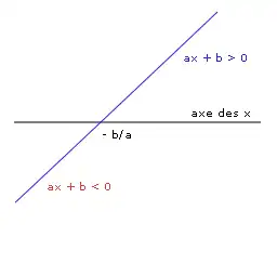 Ce qui fait dire que, pour tout a non nul, ax + b est du signe de a après sa racine