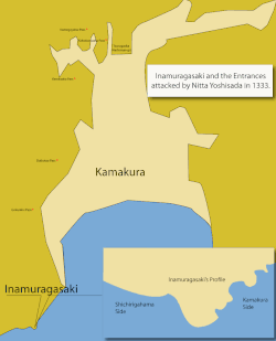 L'ancienne route Tōkaidō passait le long de la mer au sud de ce cap avant de se diriger vers la péninsule de Miura. Avant l'ouverture du col de Gokuraku, Inamuragasaki était le point d'entrée traditionnel de Kamakura à l'époque du shogunat de Kamakura. Le cap était autrefois impraticable par voie terrestre et était donc l'une des défenses naturelles qui faisaient de Kamakura une forteresse imprenable.