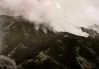 Le feu de forêt a brûlé 690 hectares de forêt ancienne dominée par sapins Douglas sur les pentes ouest de la montagne Clayton. Au moment où la tempête a eu lieu, les températures étaient d'environ 32 °C et l'humidité relative était de seulement 6 %. Bien que la plupart des pompiers se composait de personnes du Civilian Conservation Corps (CCC), ils ont été dirigés par le Service des forêts des États-Unis (USFS) plus expérimenté. Les pompiers, dans la première moitié du XXe siècle, ont principalement utilisés des outils à main pour stopper les feux de forêt et tout le matériel a été transporté par des bêtes de somme ou par les pompiers eux-mêmes. Les prévisions météorologiques et les communications radio étaient généralement faibles ou inexistantes.